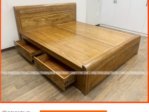 - Giường gỗ của nội thất Long Thịnh được làm từ gỗ Hương tự nhiên. Không có hóa chất độc hại, cực kì thân thiện và an toàn với sức khỏe của bạn